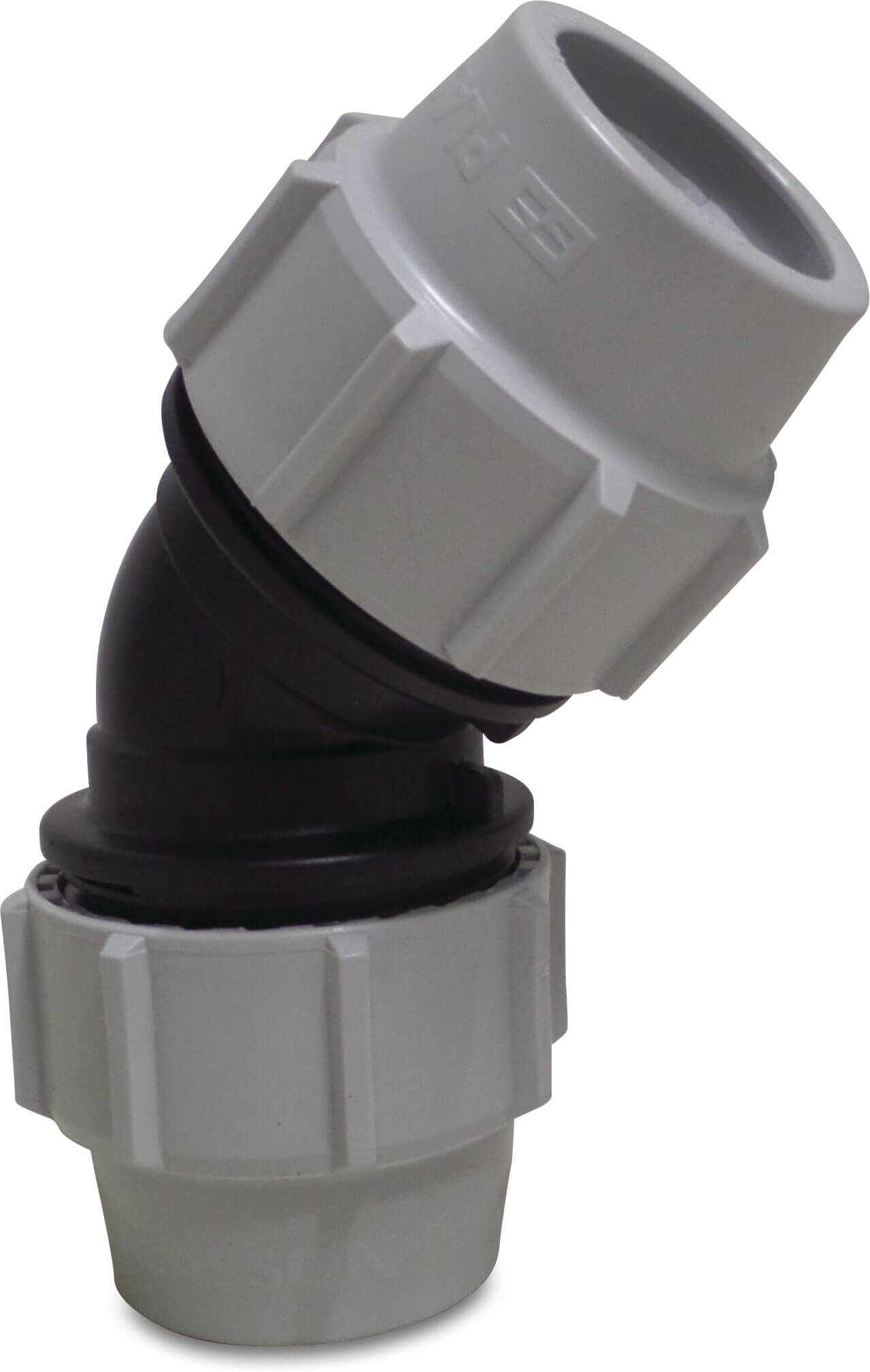 Elbow 45° PP 90 mm compression 12.5bar black/grey KIWA
