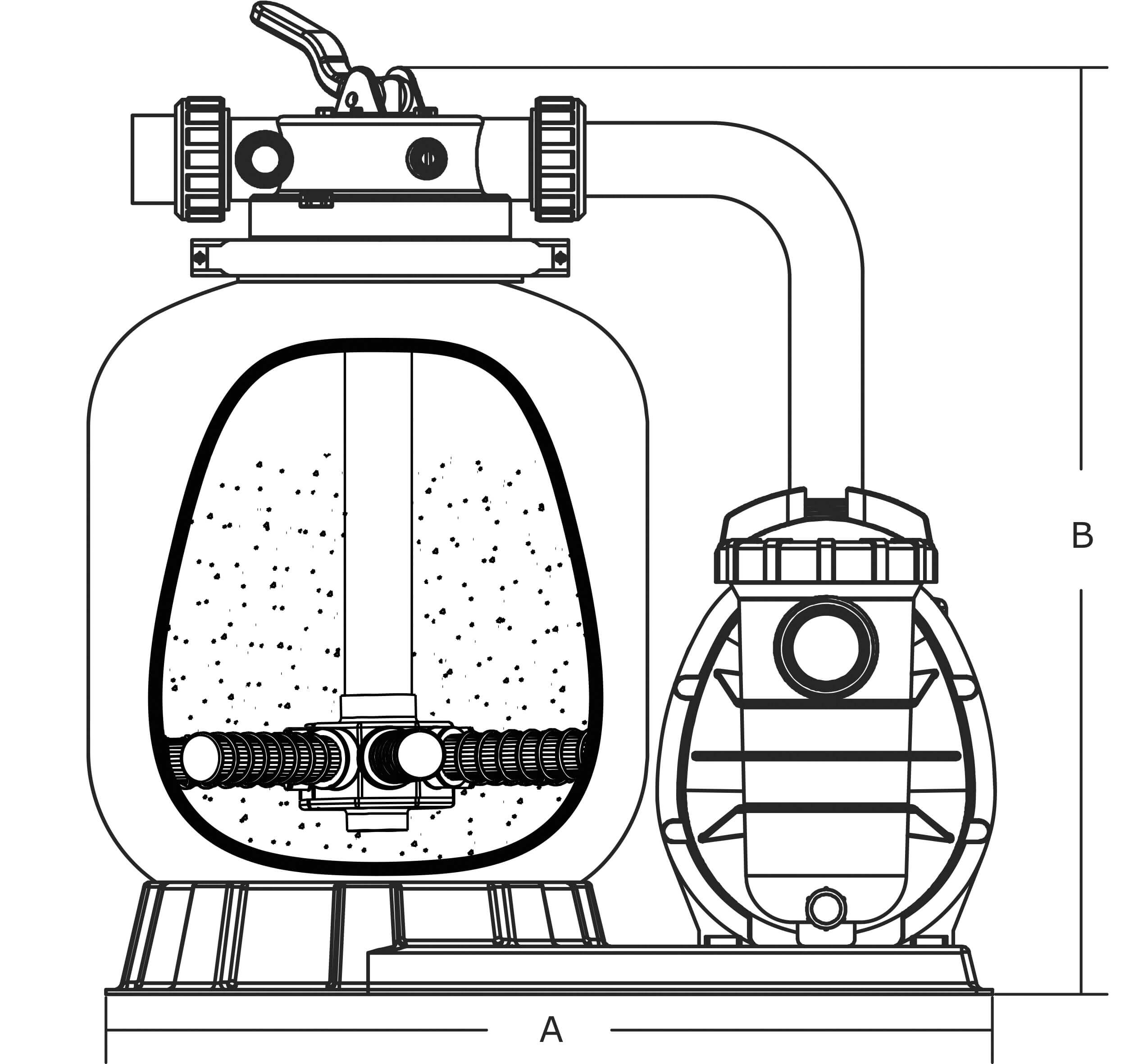 Flotide Pool filter set PE 50 mm / 1 1/2" metric/imperial glue socket 2bar 230VAC grey type FSP350-6W