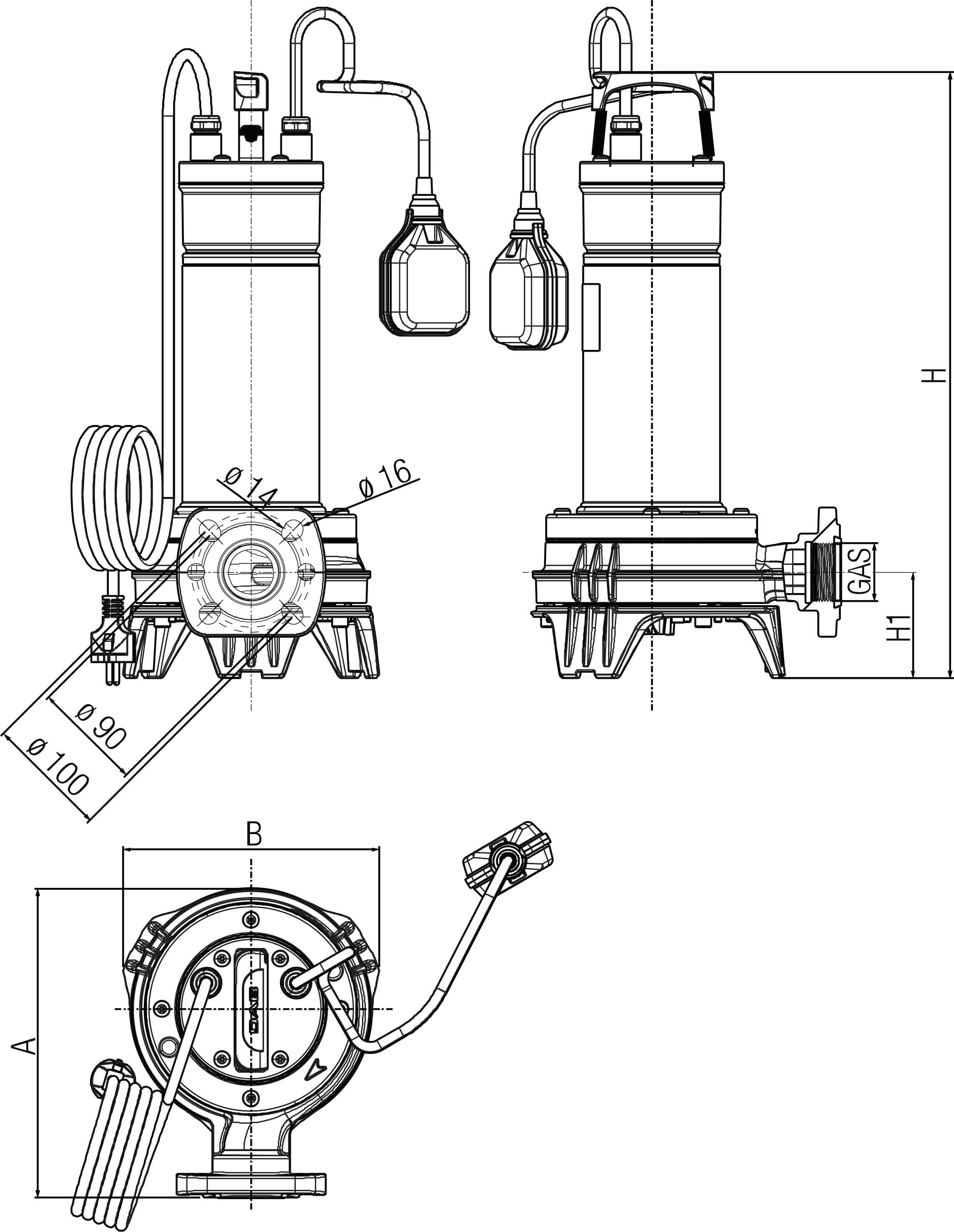 DAB Submersible pump 1 1/2" 6,4A 230VAC type Feka VS Grinder 1000 MA