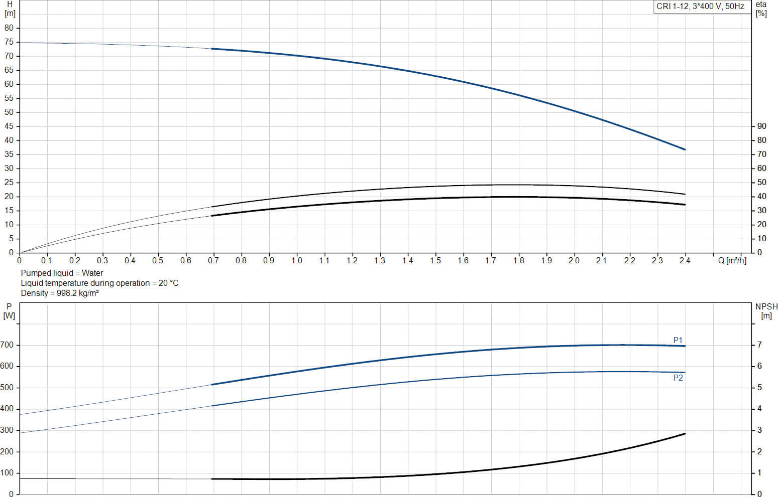 Grundfos Pompe multicellulaire acier inoxydable 1 1/4" 1,44A 400VAC type CRI 1-12 A CA I V HQQV