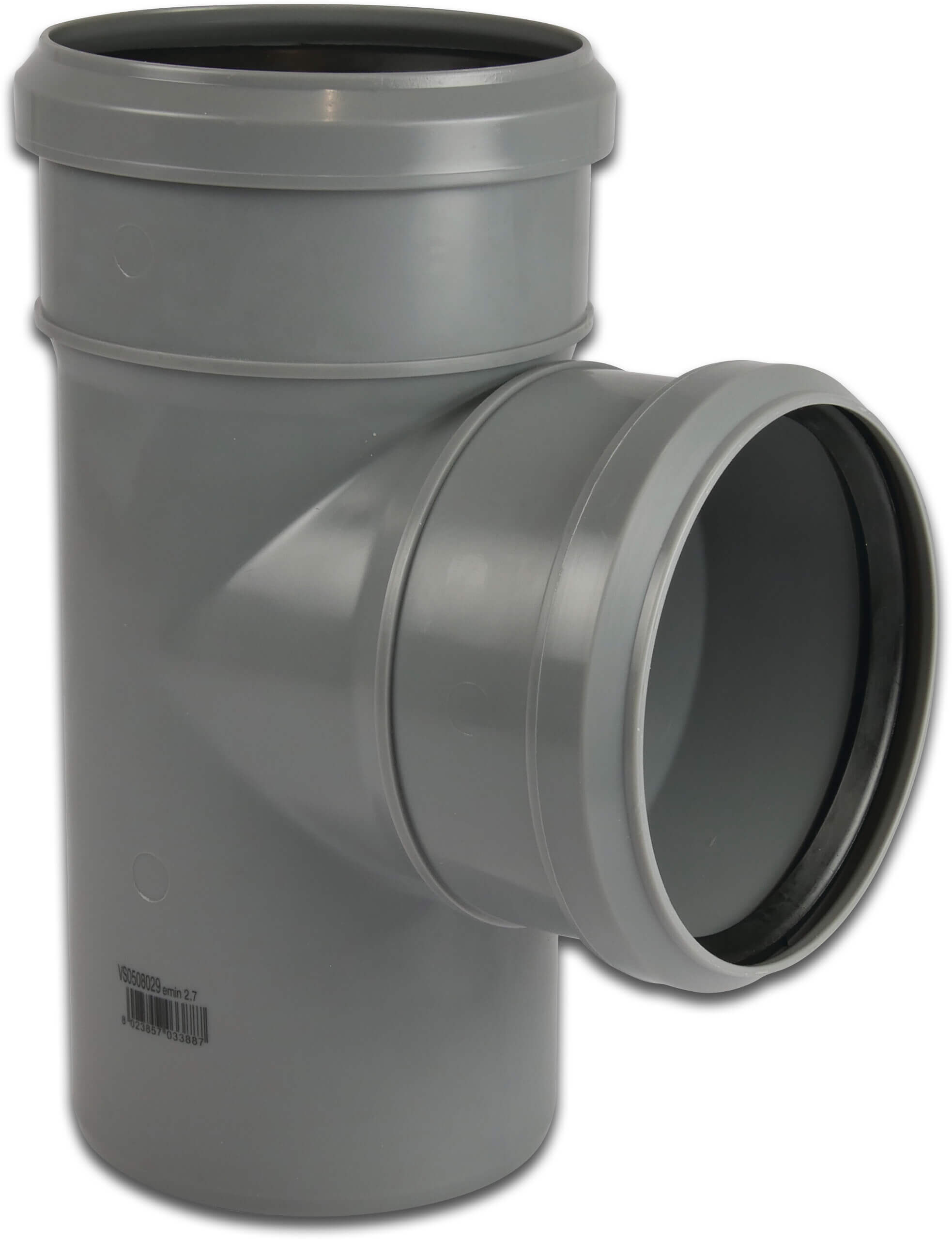 T-stuk 87° PP 40 mm manchet x manchet x spie grijs