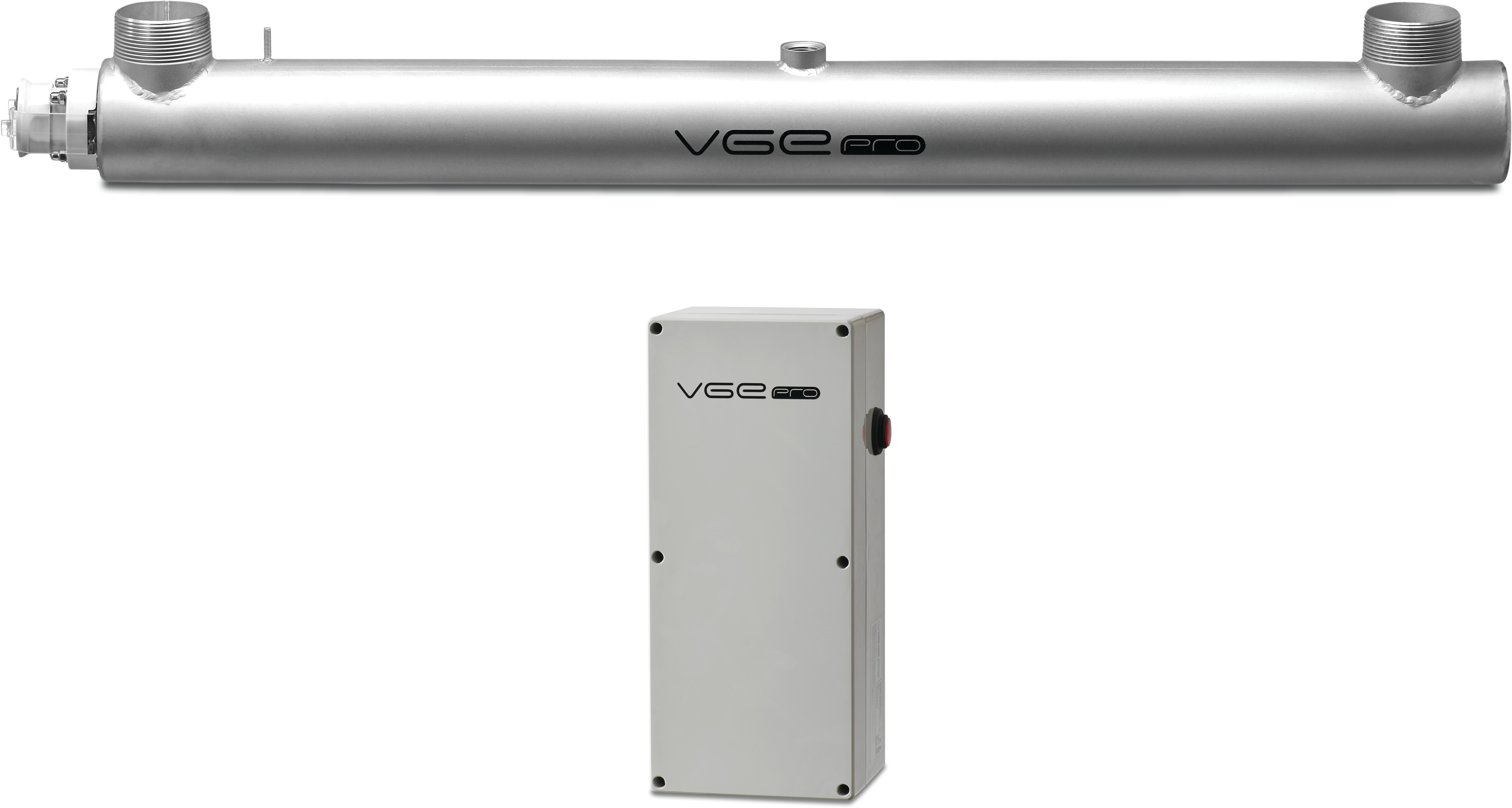 Het VGE Pro Inox-systeem zorgt voor een perfecte desinfectie dankzij het hoge vermogen en de geavanceerde behandeling door de UV-lamp. Het systeem maakt gebruik van een 316L RVS reactor van hoge kwaliteit, dankzij het hoogwaardige lasproces doorstaat de reactor alle lektests. De beits- en passiveringsbehandeling verbetert de corrosiebestendigheid en levensduur van de unit aanzienlijk. De behandeling met glasparels geeft het toestel een premium uitstraling. Het VGE Pro Inox systeem is voorzien van de unieke Smart Pin Technologie waardoor het mogelijk is om de lamp veilig te vervangen ondanks dat het systeem gevuld is met water en onder druk staat. Het is uitgerust met een basiscontroller, welke is voorzien van een elektronische voorschakelapparaat om de lamp(en) aan te sturen.